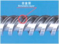 雙金屬機筒就是在機筒內(nèi)壁噴焊一層1-2mm的耐磨耐腐蝕的、耐高溫的合金,其有效使用壽命比普通氮化機筒大大提高,增加磨損壽命。對于加工工程塑料、聚砜、PPO特殊類型的塑料、PVC鈣粉高的配方等,雙金屬的優(yōu)越性尤為明顯。